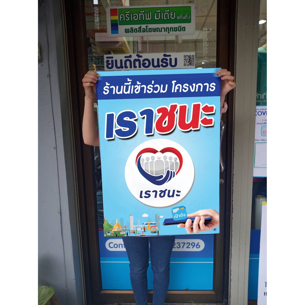 เจ้าหน้าที่เจอข้อความที่ติดไว้บนป้าย - เราชนะ from www.netgoodnow.com ช่องทางดาวน์โหลดโลโก้เราชนะ ไฟล์ป้ายร้านนี้ร่วมโครงการเราชนะ (ไฟล์ zip) ดาวน์โหลดไฟล์ โลโก้เราชนะ ป้ายร้านนี้เข้าร่วม. รองโฆษกสำนักนายกรัฐมนตรี เตือนร้านค้าร่วมโครงการเราชนะ หากโก่งราคา หรือขายแพงเกินจริง จ่อโทษจำคุก 7 ปี ปรับ 1.4 แสนบาท. ทางโครงการฯ จะยังดำเนินการตรวจสอบ และอนุมัติกิจการต่อเนื่องจนถึงวันที่ 30 เม.ย. งานคุณภาพจากผู้ผลิตเอง ป้ายไวนิล พร้อมส่งวันต่อวัน งานพิมพ์ out door ถูก ทน สวย!! ป้ายเราชนะ ม.33 เรารักกัน บัตรสวัสดิการ a4 เคลือบแข็ง ขนาด a4 พิมพ์ด้วยระดิจิตอล 4 สี สดใสสวยงาม เคลือบแข็งกันน้ำอย่างดี แน่นหนา ทนทาน 1) กลุ่มขนส่งสาธารณะ ได้แก่ แท็กซี่ รถตู้. ป้ายไวนิล โครงการ เราชนะ / เรารักกัน/ คนละครึ่ง 50/50 / ประชารัฐ (แพ็คสินค้า. Ai | ขนาดไฟล์ 201 kb.